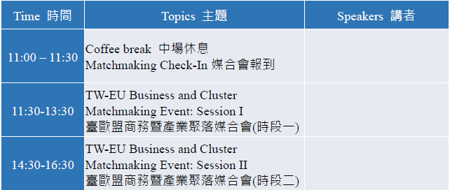 財團法人中華民國對外貿易發展協會 - 臺歐盟商務與產業聚落研討暨媒合會 (10/23)