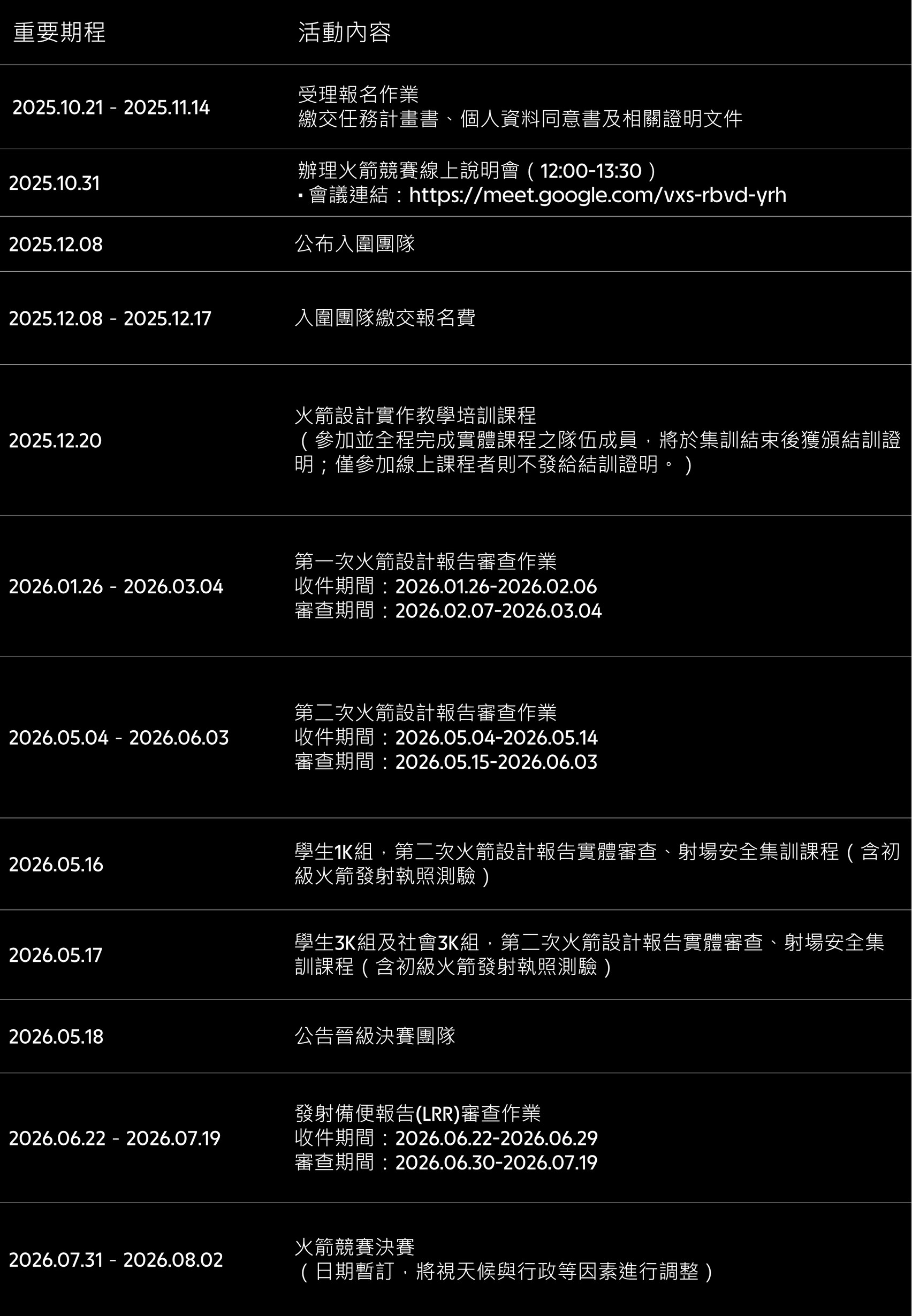 (一)線上報名:https://w3.tasa.org.tw/sseo/2025/rocket/register.shtml